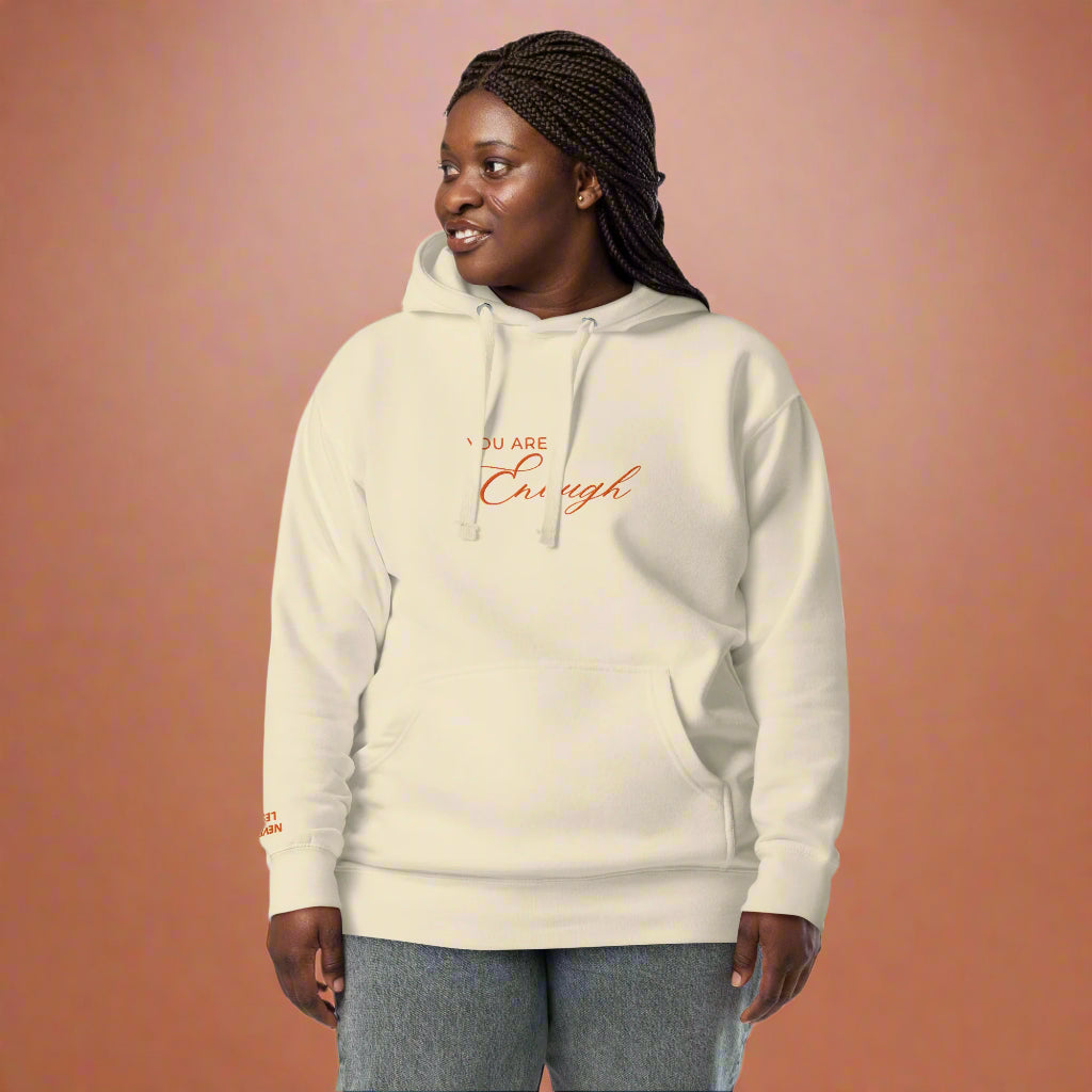 You Are Enough Classic Embroidered Hoodie - Dusty Rose and Bone