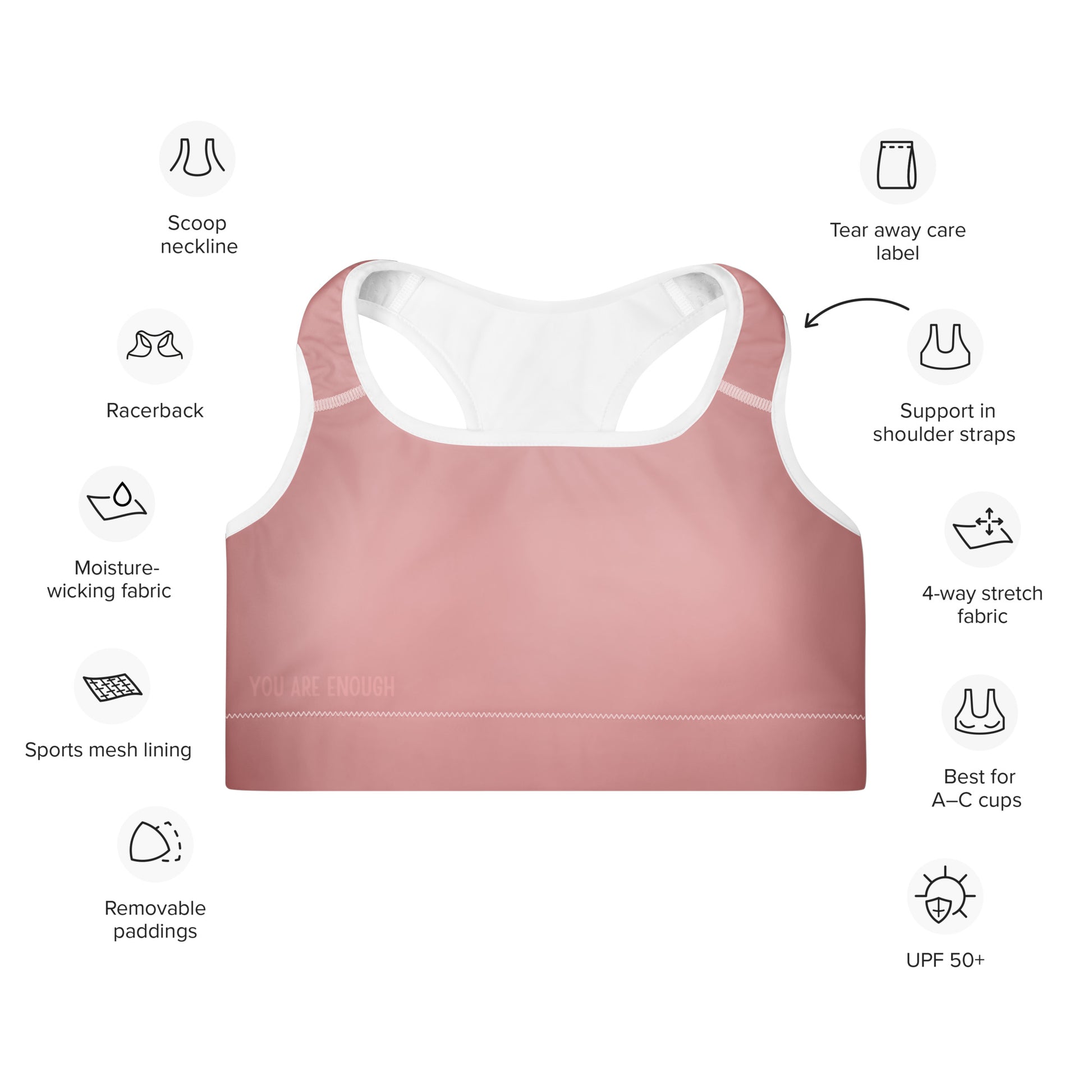 You Are Enough Padded Sports Bra - Blush Rose