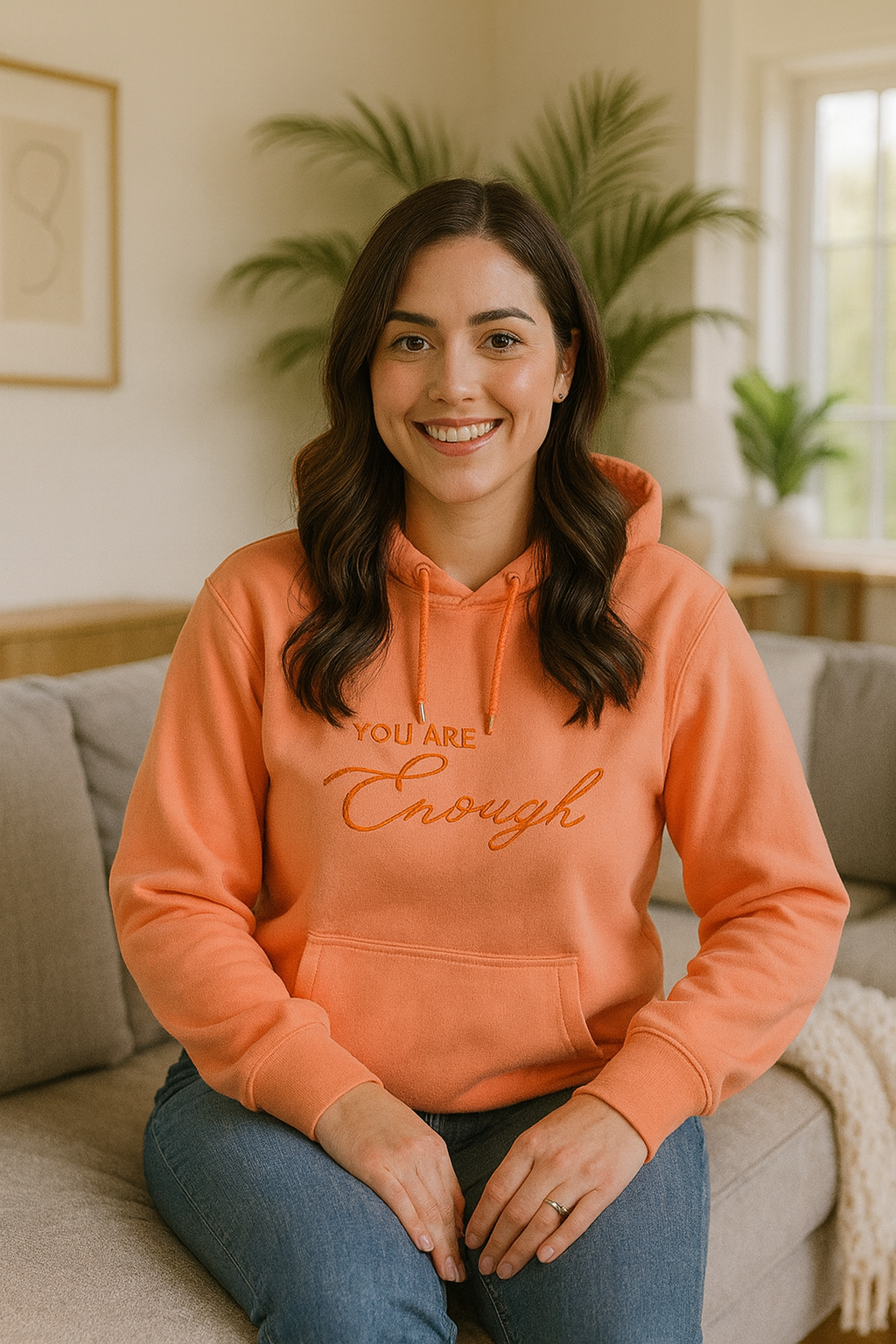 This hoodie isn’t just comfort — it’s your armor of calm. “You Are Enough” embroidered on the chest, with “Never Less” or “As You Are” stitched on the wrists, transforms every glance at your sleeve into a grounding ritual. Science shows affirmations reduce stress and rewire self-worth, while the cozy oversized fit mimics the “supportive hug effect” proven to lower anxiety.