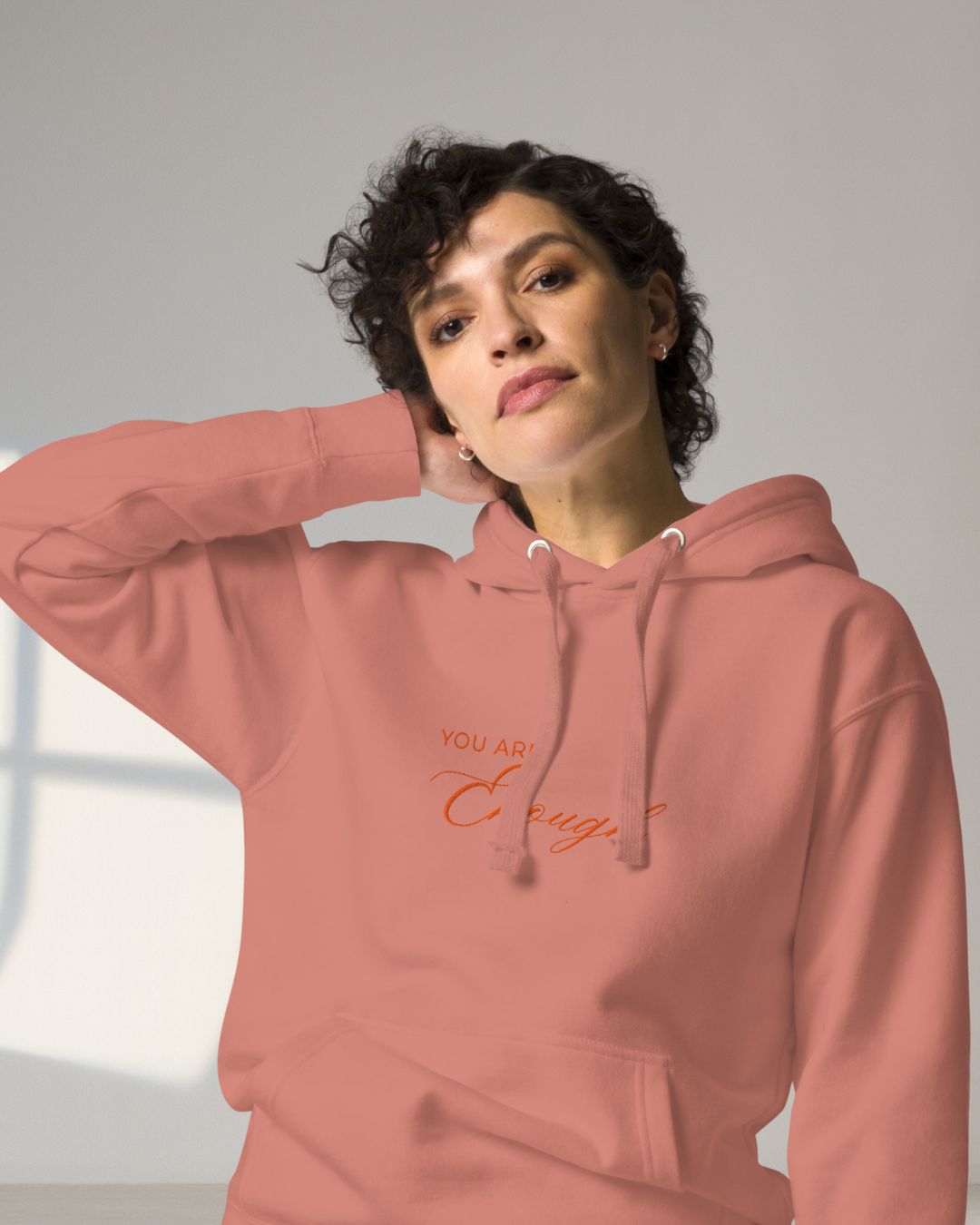 You Are Enough Classic Embroidered Hoodie - Dusty Rose and Bone