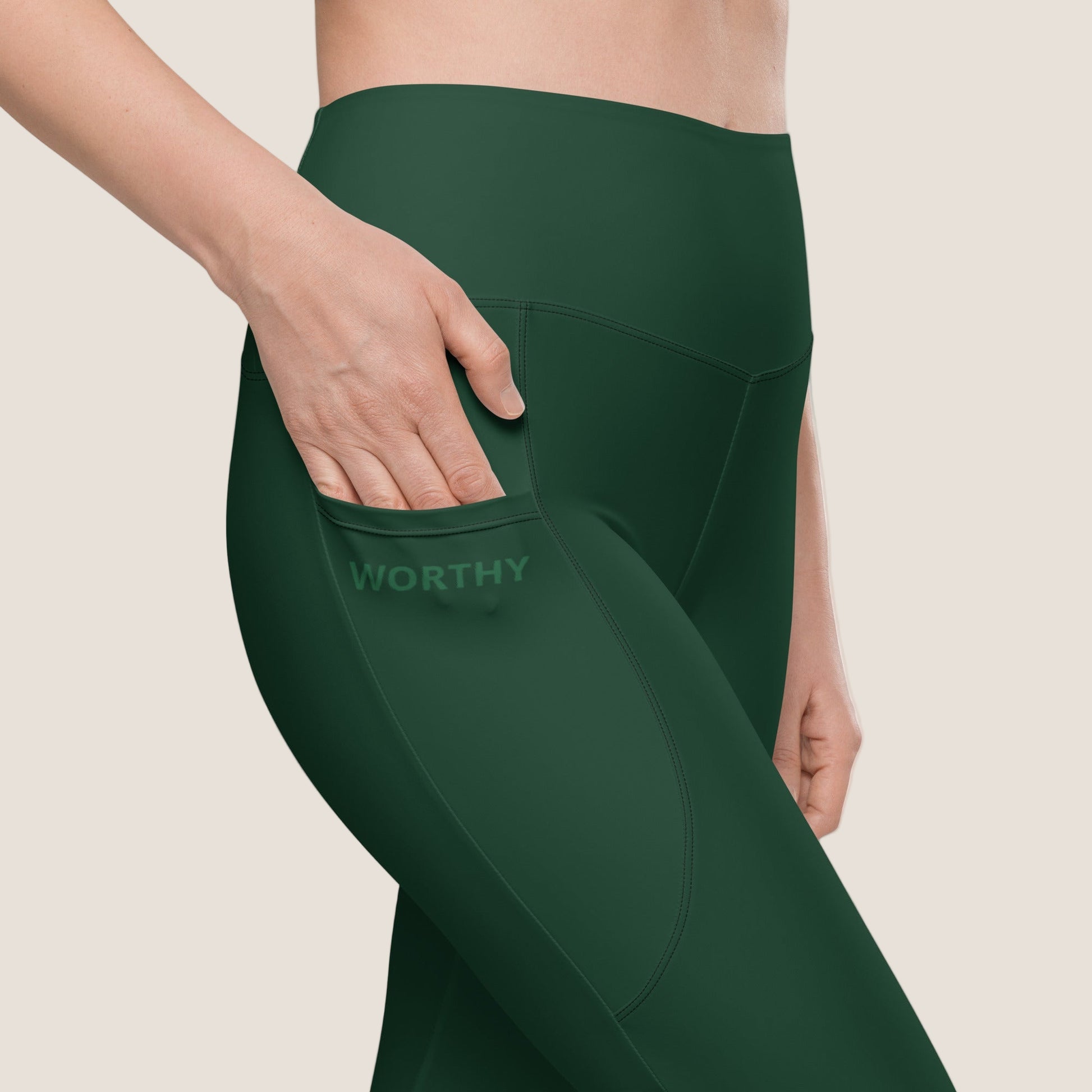 You Are Worthy Eco-Friendly Recycled Leggings with Pockets - Emerald Green