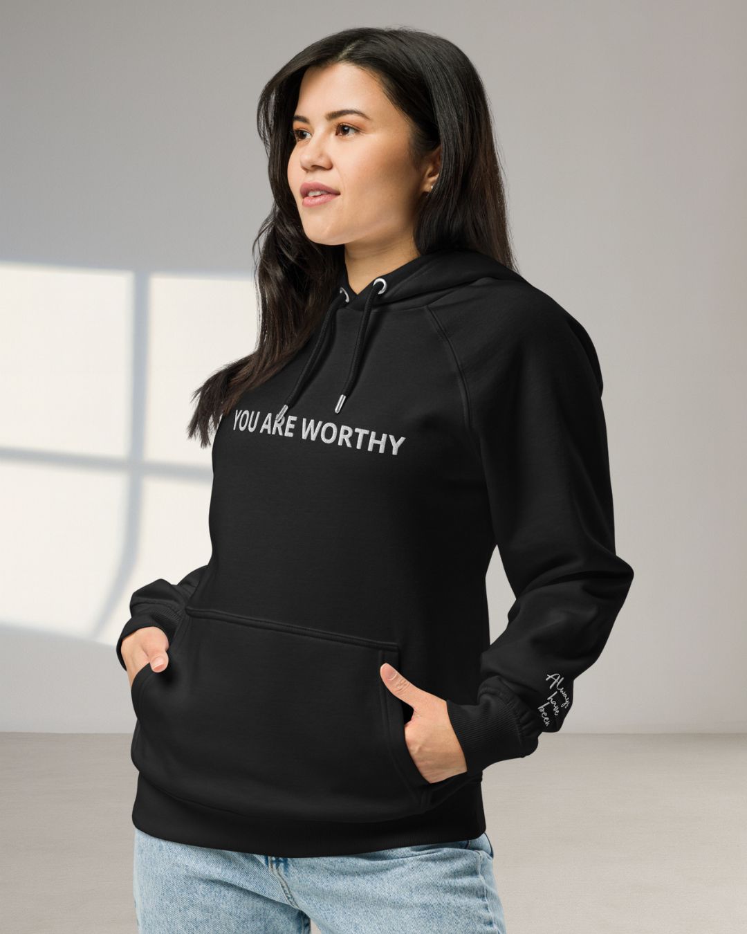 You Are Worthy Embroidered Eco Raglan Hoodie - Black, Burgundy, Green